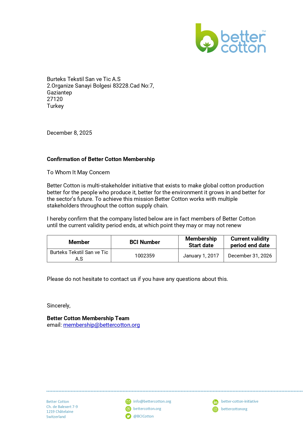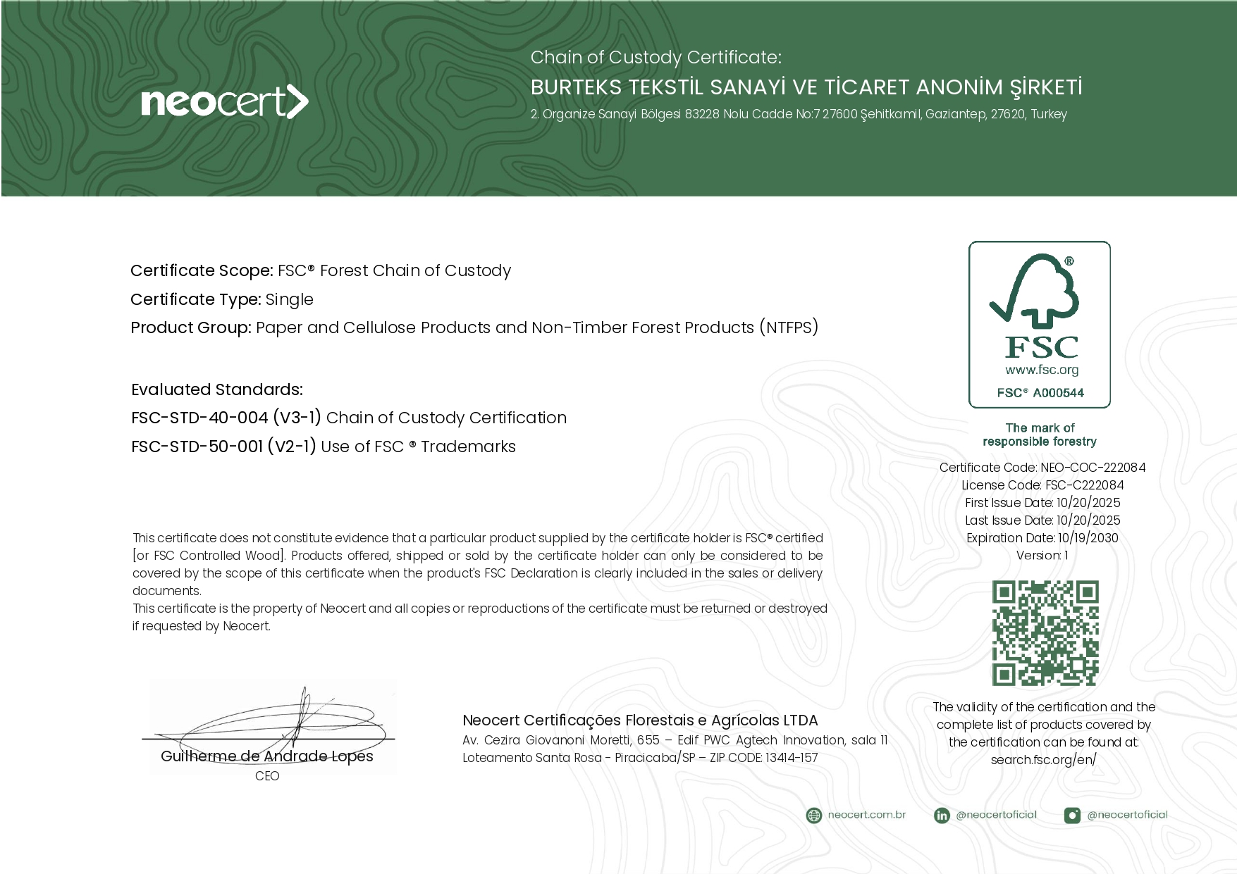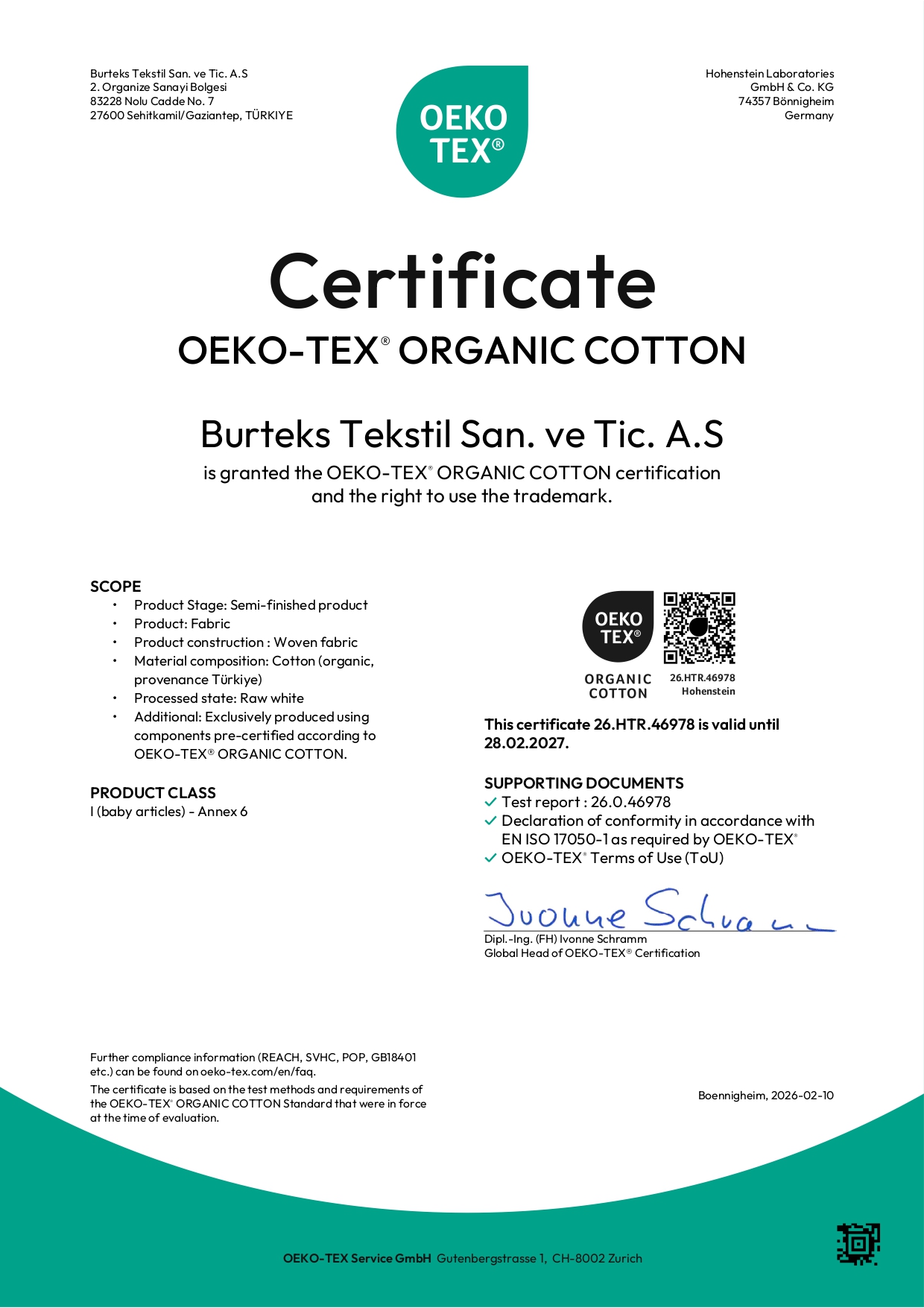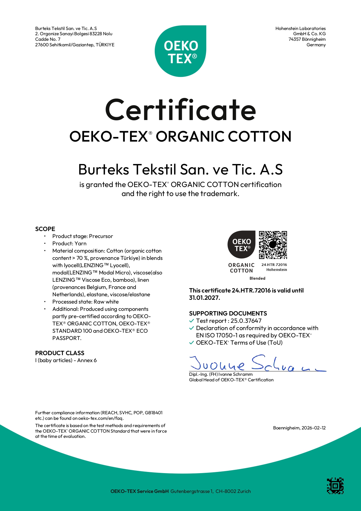 Burteks Tekstil has aligned itself with numerous international certifications and standards to document its sustainability efforts and demonstrate its commitment in this area. With the certifications that highlight their quality, the company proves that its production processes are sensitive to environmental and human health.